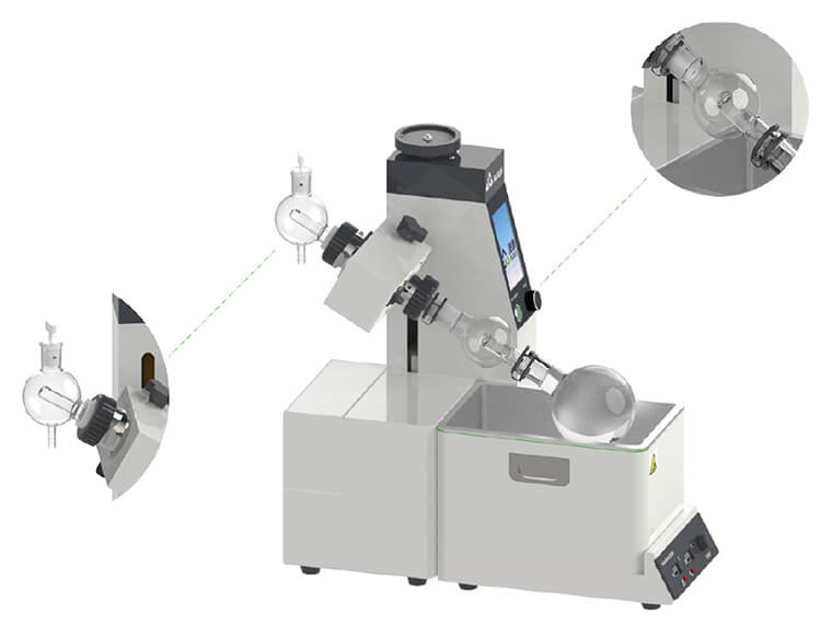 體積是傳統(tǒng)旋蒸三分之一 mini 旋轉蒸發(fā)儀創(chuàng)新性采用旋轉軸縱向設計,將產品寬度縮小到25cm,其寬度僅是傳統(tǒng)旋轉蒸發(fā)儀的三分之一,1.8 米標準通風櫥可以放置 5臺 mini 旋轉蒸發(fā)儀,充分節(jié)約通風櫥空間資源。